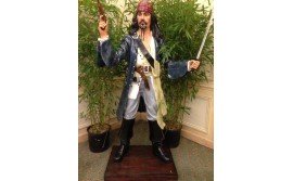 Décorations : Squelettes, statue Jack Sparrow, statues pirates, trône, tonneaux, cordes, coffres, bijoux, pièces d'or, drapeaux pirates, chandeliers, bambous, bananiers, palmiers, trône, coffre a trésor, chandelier, statue femme pirate, statue squelette, chariot à tonneaux, taverne, tête de crocodile en résine..