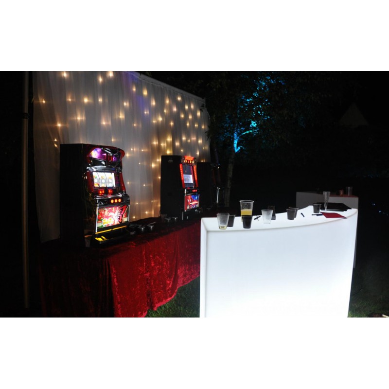 Nous créons, installations un décor digne des plus grands casinos avec machines à sous, Bandit manchot, Tables de casino avec croupiers (roulette Française, Blackjack, Poker, Boule, Chuck-a-Luck), machines à sous, tonneaux, tapis décorés, affiches de cinéma, Statue d'Elvis Presley en résine, Statue Marylin en résine, les Blues Brothers en résine, panneau lumineux Las Vegas, roulettes, boas, plumes de paon, bouquets de roses, colliers de perles, bougies, vases, cartes à jouer géantes, jetons géants, silhouettes de cinéma, chandeliers, plantes, manges debout, bar lumineux, cubes lumineux, tubes lumineux, rideaux lumineux, tapis rouge, potelés dorés et cordons rouges velours, effets lumières.
