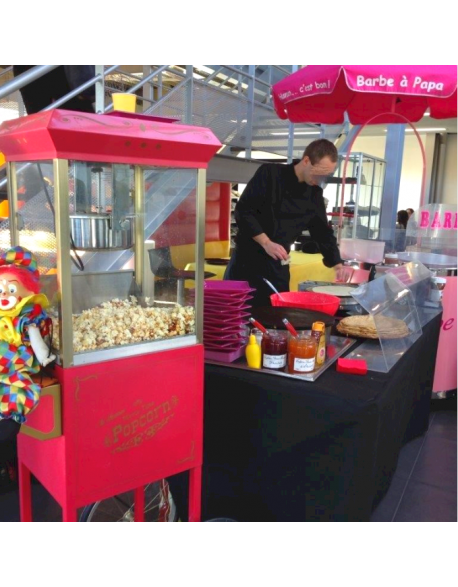 Possibilité d'ajouter : gaufres, pop-corn, churros, barbe à papa, granitas, glace à l'italienne, candy bar...